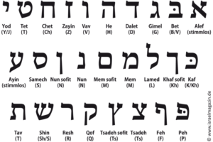 Das hebräische Alphabet enthält 27 Buchstaben, die um Vokale ergänzt werden. Geschrieben und gelesen wird Hebräisch ...