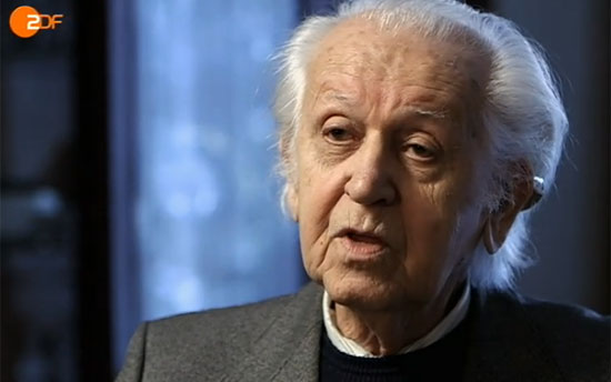 „Die Fälscher“: Schriftenmaler Isaak Plattler berichtet als Zeitzeuge. (Filmausschnitt © ZDF)