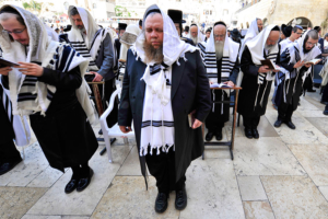 Tallit und Zizit sind der Gebetsumhang und die Schaufäden an den Ecken. Er wird von gläubigen jüdischen Männern zum ...